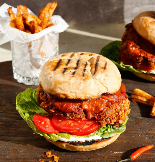 It’s the perfect spicy peri peri sandwich. Crunchy, fiery, and everything you’d expect from a classic chicken burger, but fully plant-based.