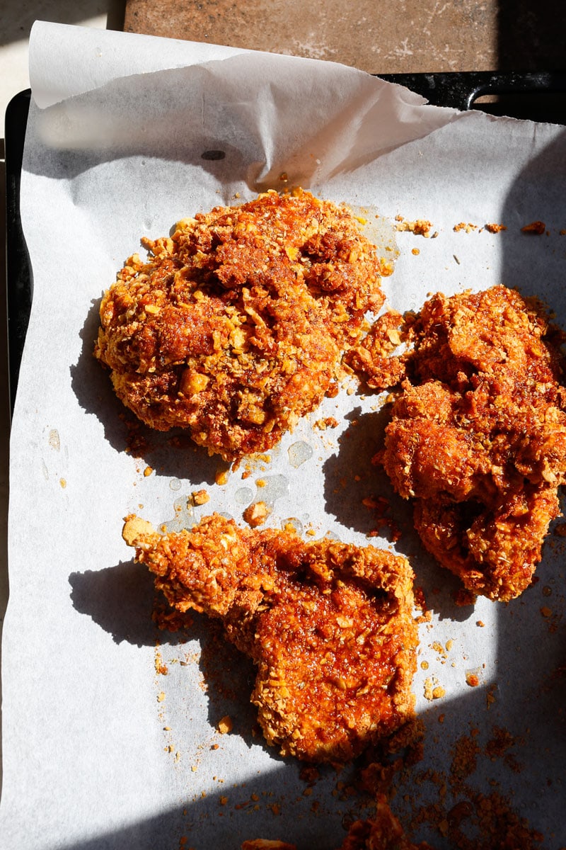 - Cornflakes: Give a crunchy, golden coating and a fried-chicken style texture when baked
