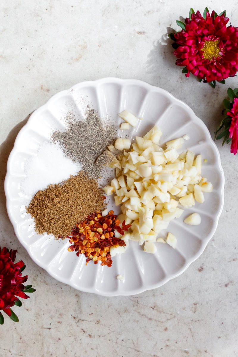 - Onion: One large or two small, sliced. I used white onions, but purple ones are great too.